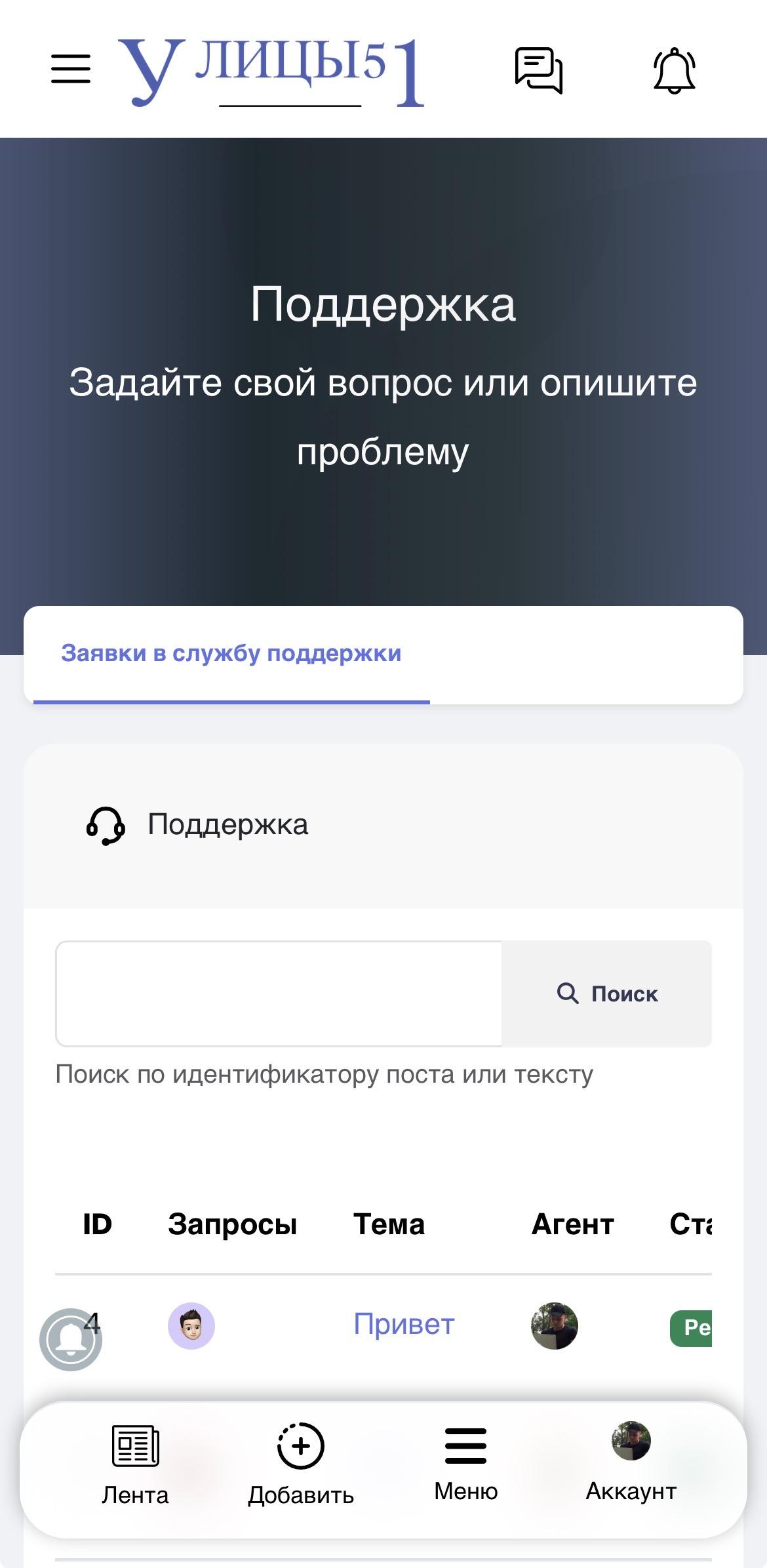 💬[Добавлен] Модуль «Поддержка»
